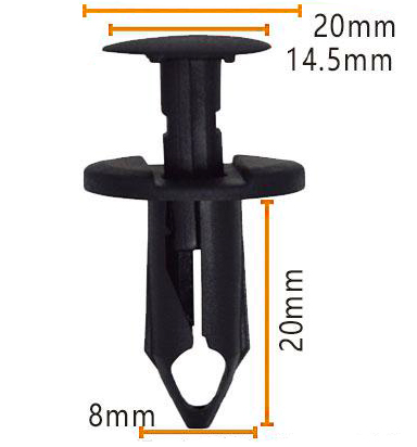 Klipo korpusas yra 20 mm ilgio ir pritvirtinamas iki 8 mm pločio pagrindo, leisdamas jam tvirtai pritaikyti vietoje ir išlaikyti stabilumą net esant slėgiui. Unikalus šių klipų dizainas leidžia juos naudoti įvairiose pramonės šakose, įskaitant automobilių, statybą ir gamybą.