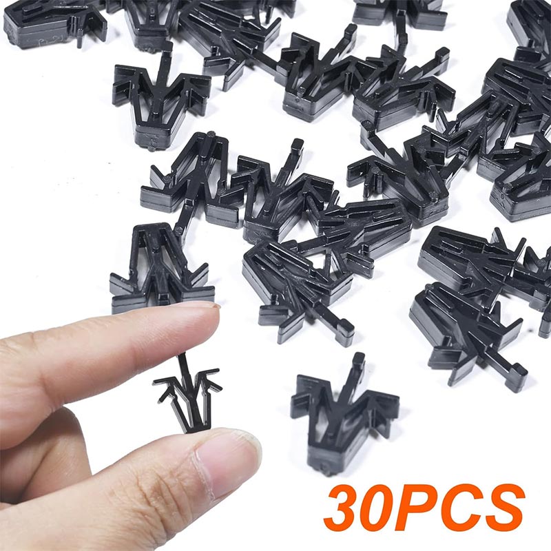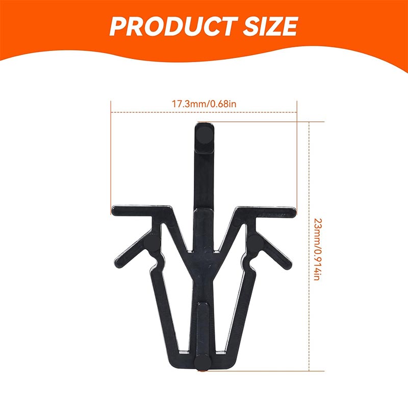 Gaminio automobilio salono apdailos plokštės grotelių laikikliai yra juodos spalvos plastikinis spaustukas, skirtas vidines apdailos plokštes pritvirtinti iš Qeepei Auto Co.. Jis turi Y formos dizainą su dviem svirtimis ir centrine juosta, kuri leidžia pritvirtinti kelias plokštes. iš karto. Gnybtai paprastai naudojami transporto priemonėse, siekiant išlaikyti prietaisų skydelio, centrinės konsolės ar kitų dekoratyvinių plokščių vientisumą. Jie taip pat gali būti naudojami baldų gamyboje, siekiant pritvirtinti medžiaginius ar odinius apmušalus prie rėmų.